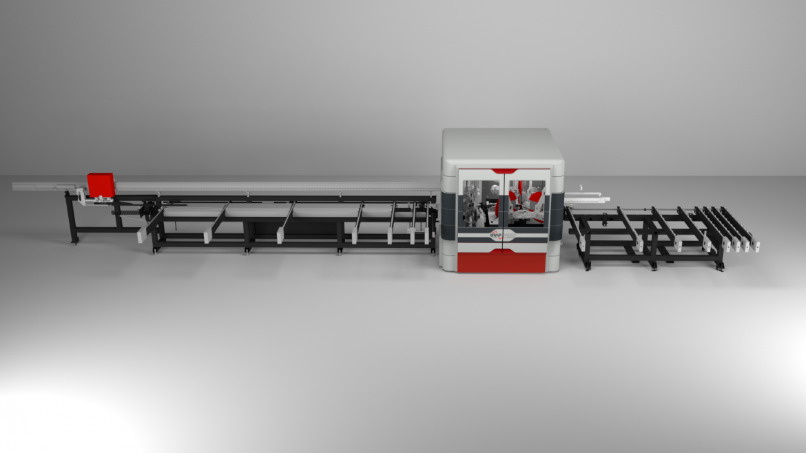 Fab Cut 3B RS: centro di taglio e lavoro CNC ad assi multipli controllati dedicato ai serramentisti che richiedono livelli di produttività ancora più elevati, fino a 500 quadri / 8h, in base alle lavorazioni, tipologia di profilo utilizzato e configurazione della macchina.