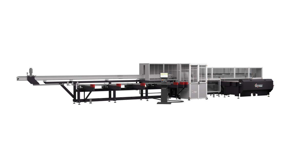 GBA 200: centro di taglio ad assi controllati per il taglio dei listelli fermavetro in PVC, è un impianto automatizzato che permette di tagliare molto rapidamente ed automaticamente i fermavetri. Grazie all’elevata automazione è richiesto l’intervento dell’operatore soltanto per il carico delle barre fermavetro e il prelievo dei pezzi finiti. Il sistema di presa è stato progettato in modo da tensionare longitudinalmente il fermavetro per evitare vibrazioni e flessioni durante il taglio, inoltre consente un’incredibile flessibilità nell’utilizzo di nuovi profili, che sono solamente da aggiungere in programmazione senza la necessità di intervenire sulle controsagome di presa.