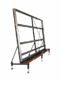 - Spalliera verticale con protezione. 5 listelli con ruote folli e profili salva-angolo assicurano appoggio stabile e sicuro dei quadri.