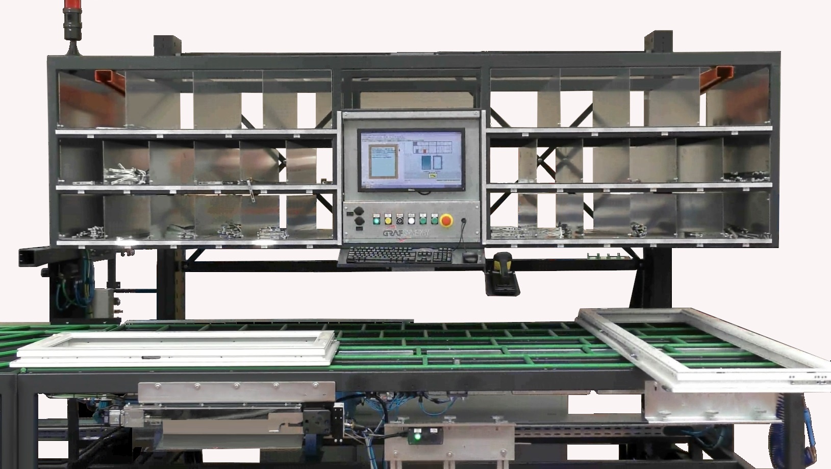 Il FAZ II è un centro di lavoro compatto e automatizzato progettato da GRAF Synergy per velocizzare e standardizzare il montaggio della ferramenta su ante in PVC. Grazie alla sua doppia stazione – banco di preparazione e tavolo di avvitatura – consente di assemblare fino a 240 quadri per turno, con un solo operatore.
