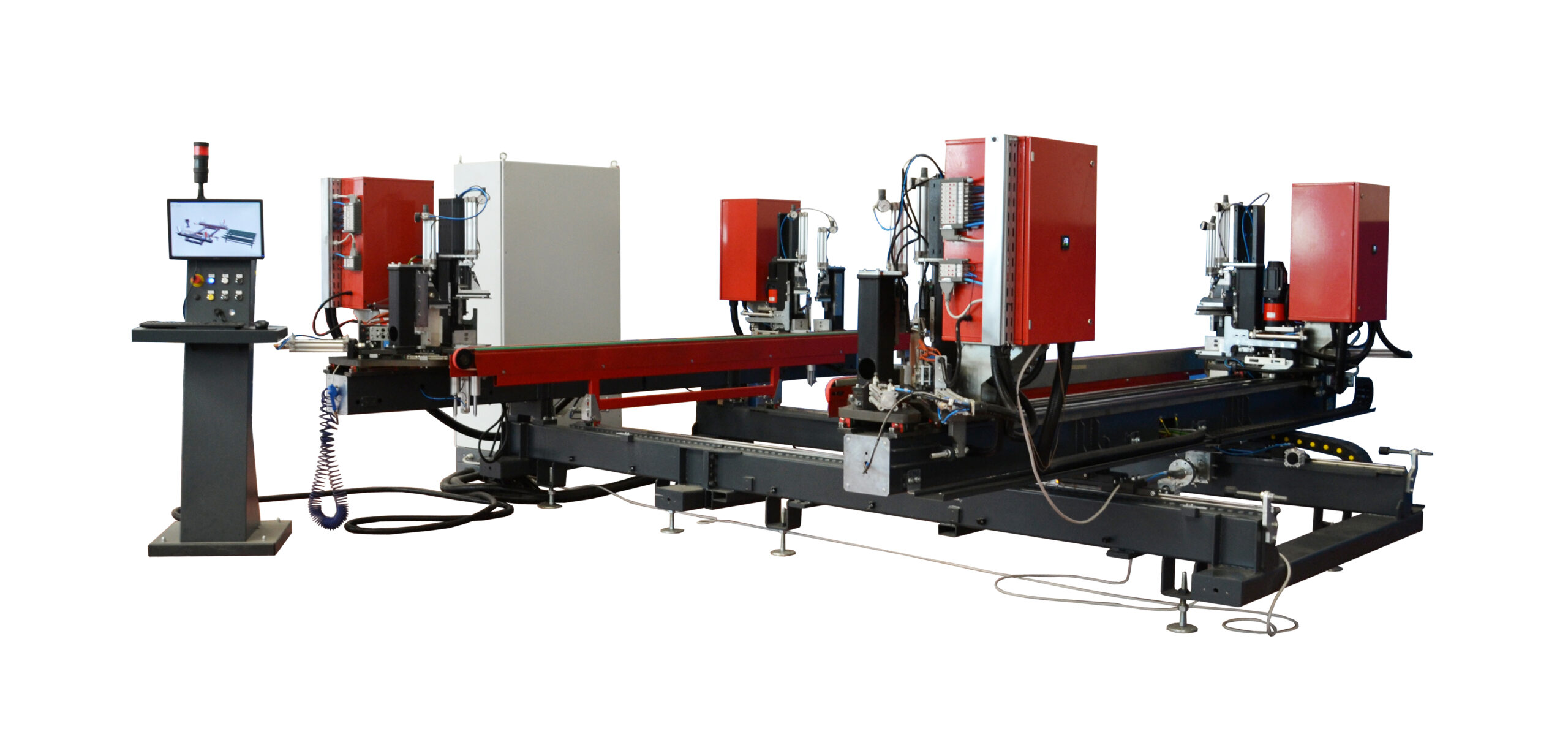 La SL4-FS è la saldatrice CNC a 4 teste con 7 assi controllati, progettata per unire in un solo ciclo i quattro angoli di un telaio in PVC con una velocità superiore del 50% rispetto ai sistemi tradizionali.