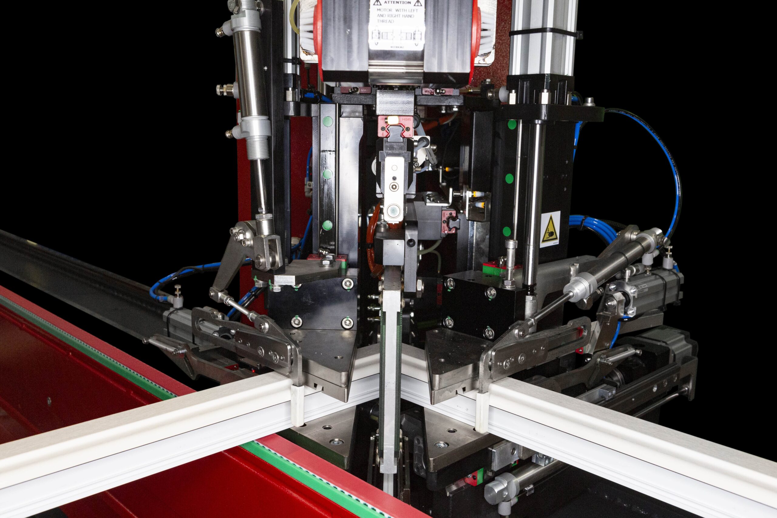 SL8 FF TR automatizza l’intero processo di saldatura per telai completi in PVC, con operazioni simultanee e perfetta planarità delle giunzioni anche su profili complessi.