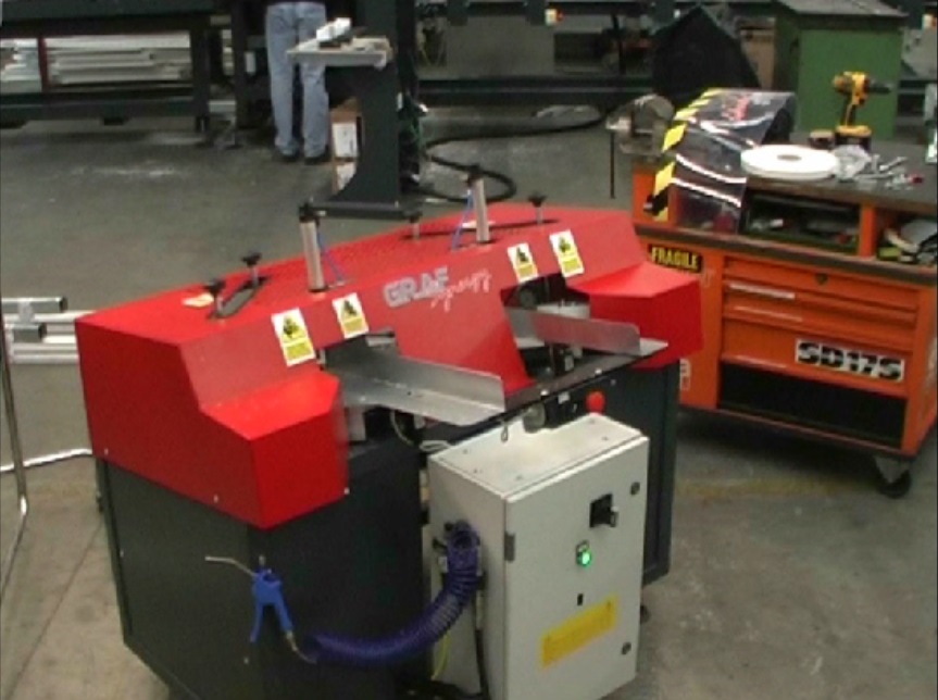 Fresatrice per asportazione estremità guarnizioni profili in PVC prima della saldatura