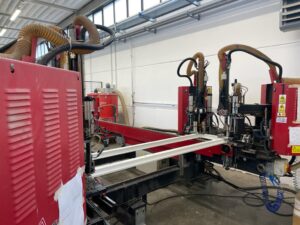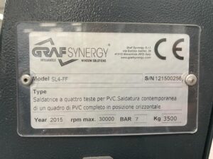 Saldatrice simultanea dei 4 angoli di un quadro di PVC completo in posizione orizzontale, senza necessità di pulitura del cordolo di saldatura